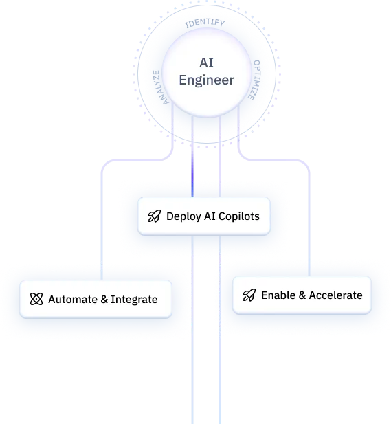 We go beyond offshoring talent — we embed AI Engineers that makes your teams, processes, and company smarter over time.